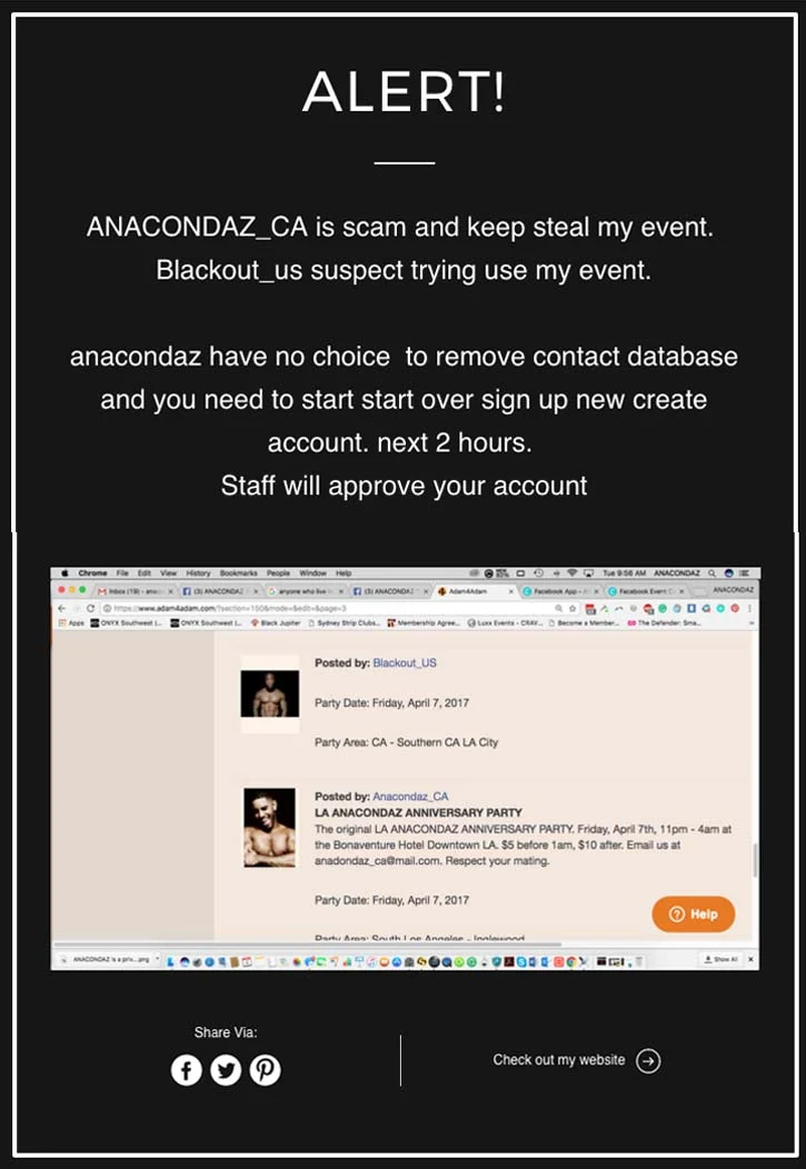 For example, here is a legit Blackout Social event we recently posted on Adam4Adam: